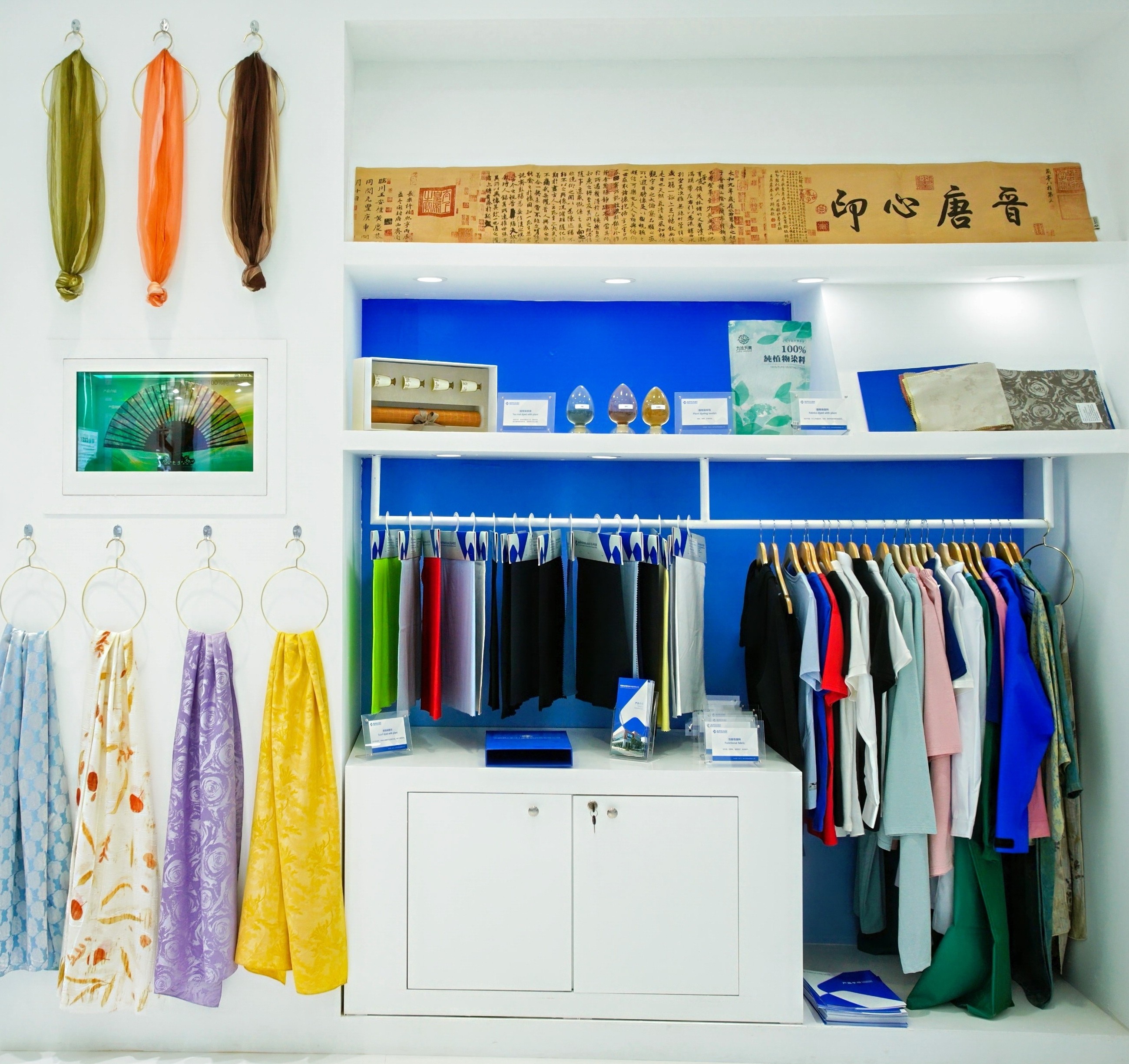 通用技术新材中纺院江南分院主要展示了植物染、医疗防护面料、复合面料等系列产品。植物染料源于自然,与环境相容性好,可生物降解,提取制备过程不产生污染环境的废水废气,唯一的固体残渣可发酵后作为种植基地的有机肥或营养土再利用回归自然。