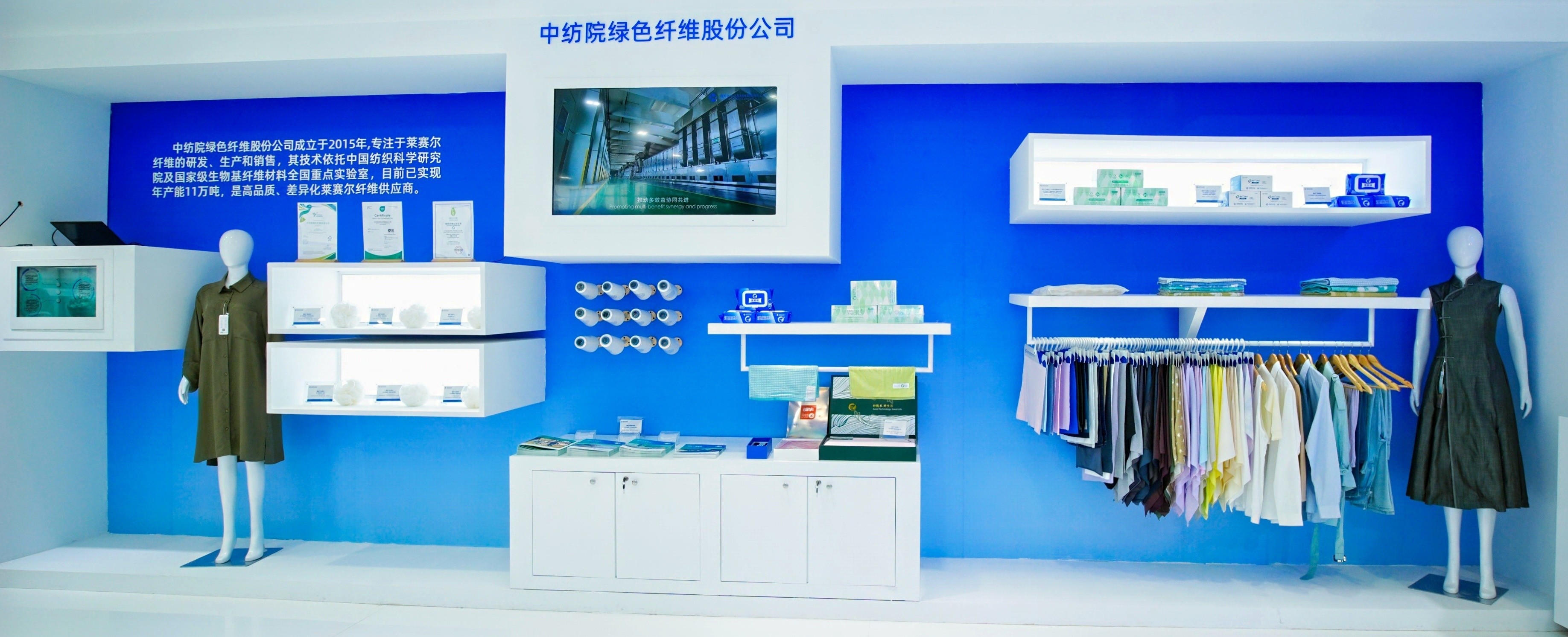 通用技术新材中纺绿纤生产的绿纤®(G-FIBER®)莱赛尔纤维,是集科技、绿色、时尚为一体的纤维新材料,具有超越棉花的吸水透气性、不逊于涤纶的高强力,并且如真丝般柔软顺滑,天然亲肤、抑菌、环保,应用于服装服饰、家纺用品、个护家清、医卫健康等终端产品系列。本次展会,通用技术新材中纺绿纤展示了优赛尔®抗原纤化莱赛尔、芙赛尔®低原纤化莱赛尔、安耐纤®阻燃莱赛尔、绿纤竹®,各类差异化、高值化的国产莱赛尔纤维及其终端制品。