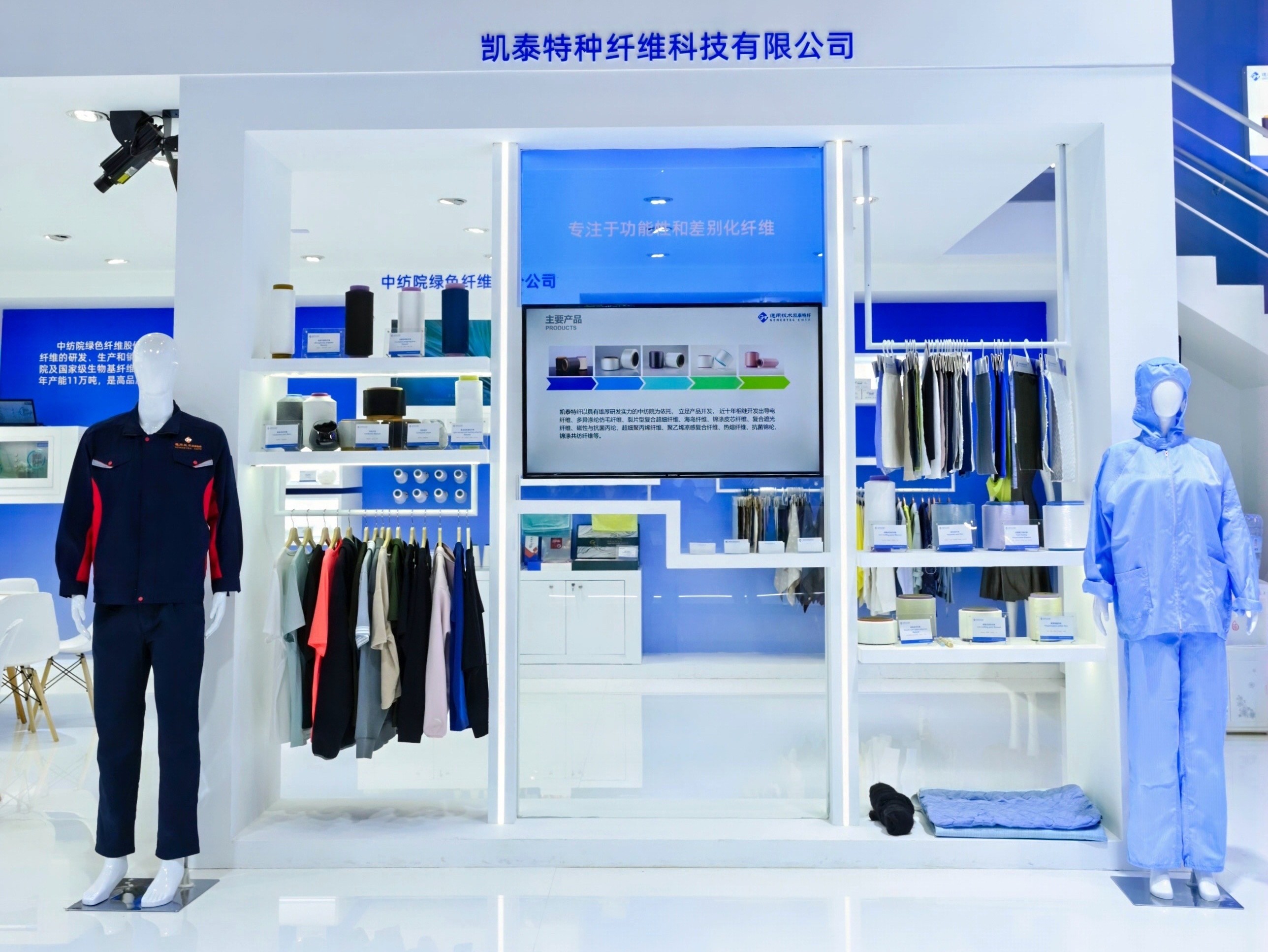 通用技术新材凯泰特纤立足产品开发,在化纤前沿科技、公益科技及战略科技方面屡有突破,相继开发出裂片型复合超细纤维、海岛纤维、锦涤皮芯纤维、复合遮光纤维、复合抗菌纤维、低熔点纤维、凉感聚乙烯纤维等,成为高端纺织行业所需纤维原料的指定供应单位。展会上,导电纤维、凉感聚乙烯纤维、微多孔涤纶纤维等成为展会全程最受关注的区域。导电纤维凭智能穿戴、防护、医疗监测等领域的跨界潜力,引服装面料企业合作;凉感聚乙烯纤维则成为运动品牌夏季新品开发的核心材料。