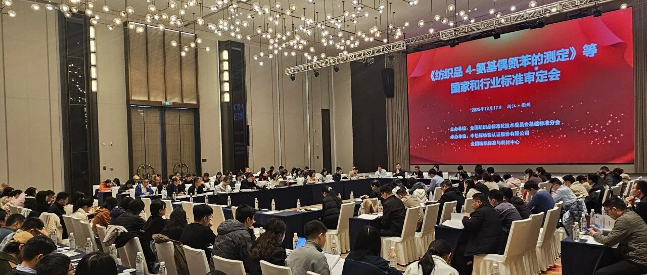 2025年12月17日至18日,全国纺织品标准化技术委员会基础标准分会(TC209/SC1)在浙江衢州召开《纺织品 4-氨基偶氮苯的测定》等12项国家标准和行业标准审定会。中国纺织工业联合会科技发展部副主任、全国纺织品标委会基础标准分会主任委员孙锡敏,通用技术新材副总经理、中纺院总经理、全国纺织品标委会基础标准分会副主任委员马咏梅,东华大学纺织检测中心常务副主任、全国纺织品标委会基础标准分会副主任委员李卫东,中国纺织工业联合会科技发展部标准计量处处长、全国纺织品标委会基础标准分会副秘书长王国建,全国纺织品标委会基础标准分会顾问郑宇英出席会议。来自科研院所、海关、质检系统、检验机构、生产企业以及标准起草单位的170余名代表参加了本次会议。