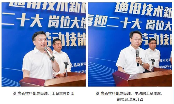 开幕式上,高新材料工会主席、副总经理刘剑致开幕辞,高新材料副总经理、中纺院工会主席、副总经理李开占作劳动竞赛活动筹备情况报告。